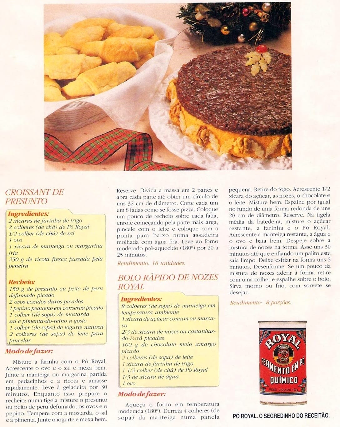 Para hoje temos duas receitas gratuitas do pó de fermento royal, de croissant de presunto e de um bolo rápido de nozes, bom proveito!