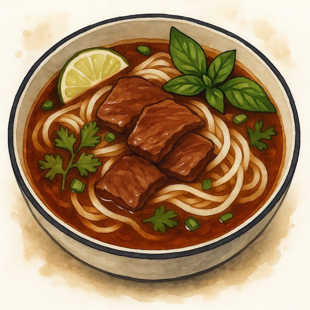 O phở bò é o prato mais icónico do Vietname e uma das sopas de rua mais populares do país, representando o coração da culinária vietnamita. Esta sopa aromática de massa com carne bovina combina um caldo profundamente saboroso, cozinhado por horas com ossos de boi e especiarias aromáticas, massa de arroz fresca e fatias tenras de carne bovina. O que torna o phở verdadeiramente especial é o seu caldo complexo, infundido com anis estrelado, canela e outras especiarias quentes, criando um equilíbrio harmonioso de sabores que o tornou uma comida de conforto amada em todo o mundo.